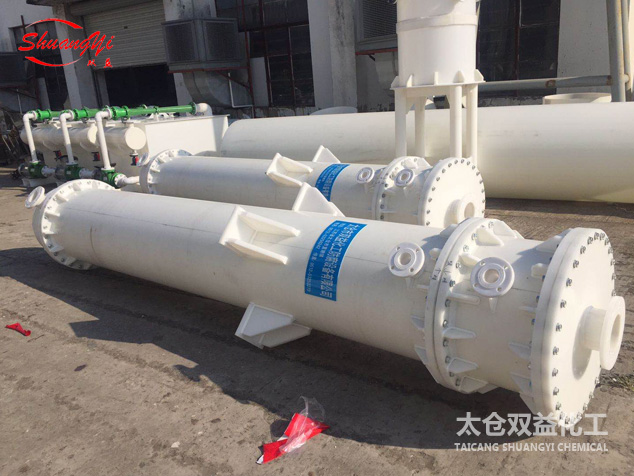 本設(shè)備為全塑、固定、管板、列管式換熱器,系用石墨改性聚丙烯塑料制成,殼體、管板、封頭法蘭及接管等零部件均采用純聚丙烯塑料制成。